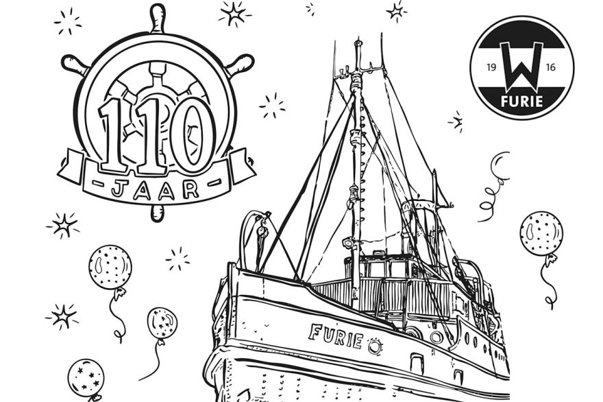 Doe mee, kleur de Furie in en vier samen met ons het 110-jarig jubileum van deze bijzondere stoomzeesleepboot!