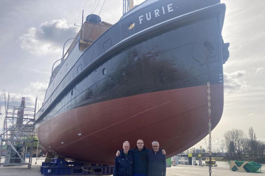 Zoals velen van jullie misschien al is opgevallen, ligt de Furie al een tijdje niet meer op haar vertrouwde plaats aan de Stadhuiskade. Eind januari is de Furie namelijk door de Tonijn naar scheepswerf De Haas Rotterdam gebracht en daar ligt ze sindsdien in dok. Deze mooie dame heeft namelijk ook wel eens groot onderhoud nodig.